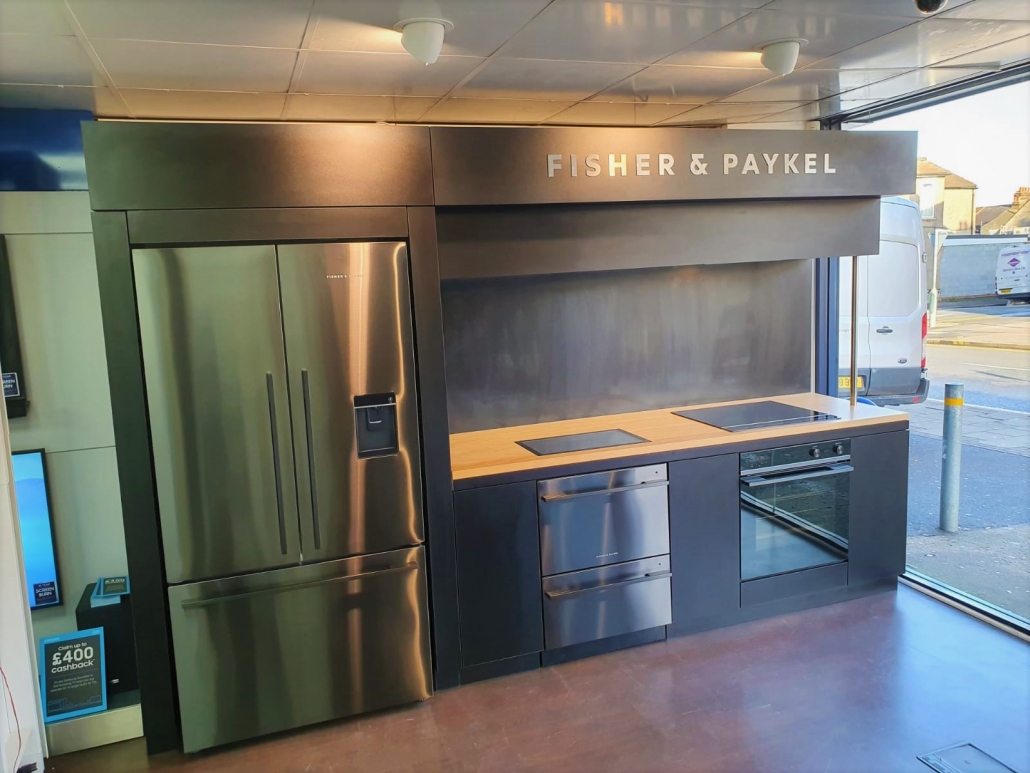 Fisher and Paykel approached Dynamix about manufacturing and installing a new in-store display for Wellingtons store in Dartford, London. We have worked with Fisher & Paykel a number of times so as a company we were comfortable knowing what they wanted and needed for this project.